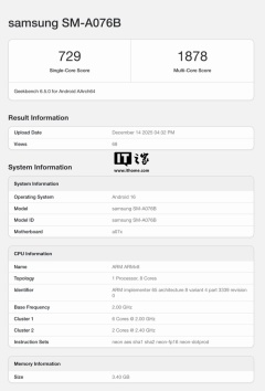 三星最便宜 5G 手机:Galaxy A07 5G 跑分曝光,6 年安卓更新 + 天玑 6300 芯片