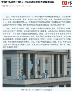 中国广电成功开展 5G-A 低空通信专网关键技术验证,实测上行速率达 200Mbps 以上
