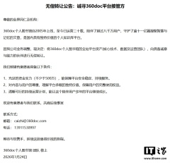 2005 年上线至今已运营超 20 年:360doc 个人图书馆宣布无偿转让平台资产,设 500 万元资金门槛