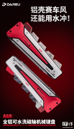 达尔优推出 A68 铝壳防水磁轴键盘:号称可防咖啡可乐泼溅、亦可直接水洗,399 元起