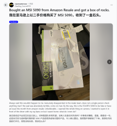 网购微星 RTX 5090 显卡却收到浴巾裹石头,网友分享被骗经历