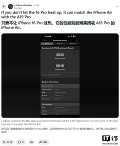 主动散热解封苹果 A18 Pro 满血性能:iPhone 16 Pro Max 多核跑分超 iPhone Air