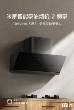 预售价 1299 元:小米米家智能吸油烟机 2 侧吸版,24m³/min 大吸力、63dB(A)降噪设计