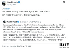 提升 50%,消息称苹果 iPhone 18 标准版配 12GB 内存