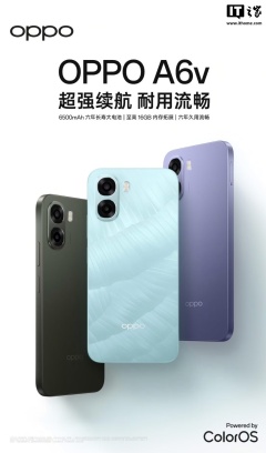 OPPO A6v 手机开售:6500 毫安时电池、天玑 6300 + 8G + 256G 售 1199 元