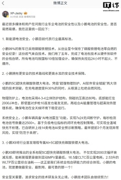小鹏动力总成高级总监力挺磷酸铁锂电池:小鹏 99% 的新车已采用,保持零自燃的安全纪录